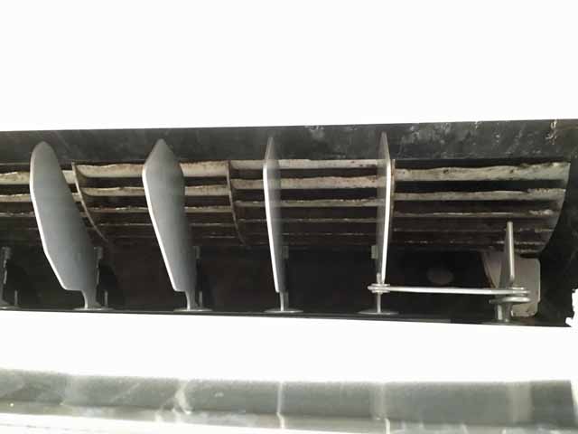 ホームセンターやネットで売られているエアコン洗浄スプレーは、冷却フィン用のものが多いですが、エアコンの送風部分を下から覗くと、カビや汚れが送風ファンに付着していたので自分で掃除をすることに。